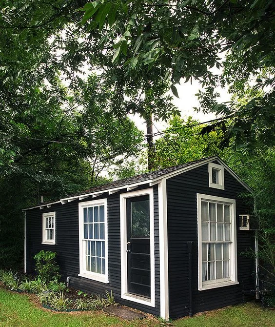 Anyway, the point is that I love them. And I'm thinking about them because I am eventually going to move my temporary art studio - currently in my basement - into some kind of backyard structure. This endeavor is many months off, but in my dreams, my backyard art studio looks something like this...